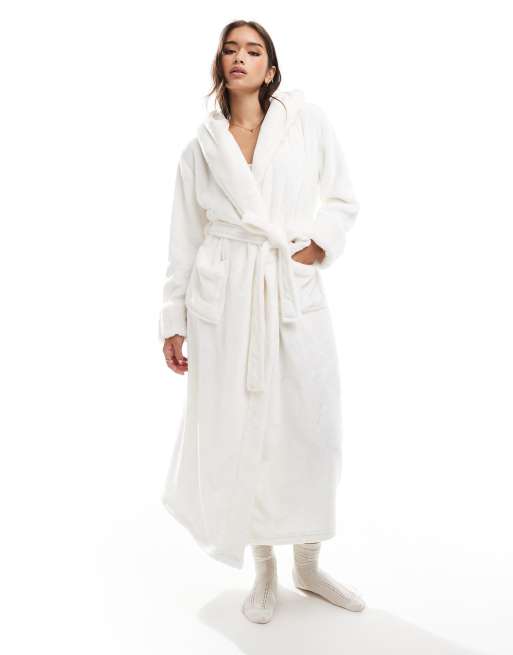 Boux Avenue – Beige, lång morgonrock med fuskpäls