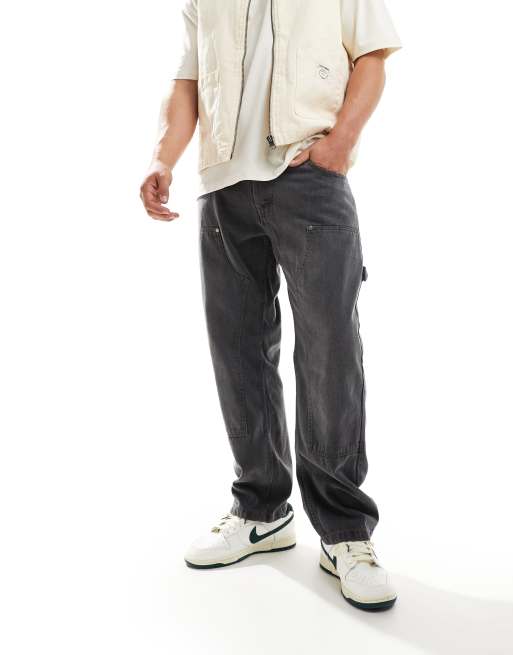 Brave Soul – Blekgrå, lediga jeans med snickardetaljer