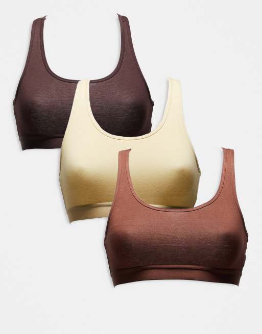 Brave Soul – Brun bralette i bomull med brottarrygg, 3-pack