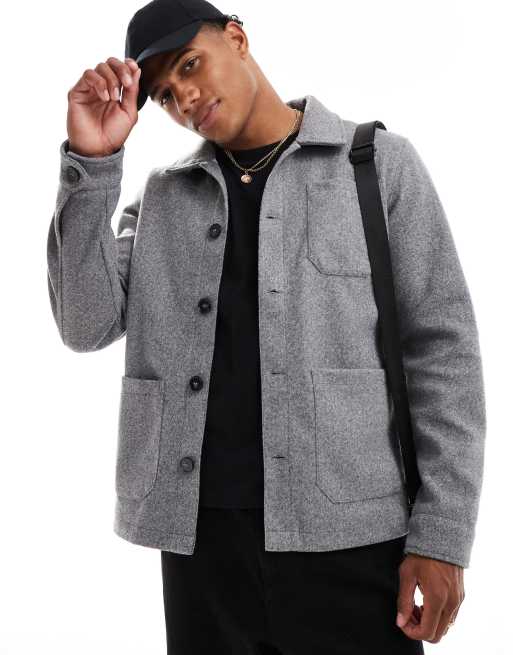 Brave Soul – Grå skjortjacka i ullimitation