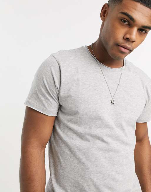 Brave Soul – Grå t-shirt med råskuren fåll och ficka