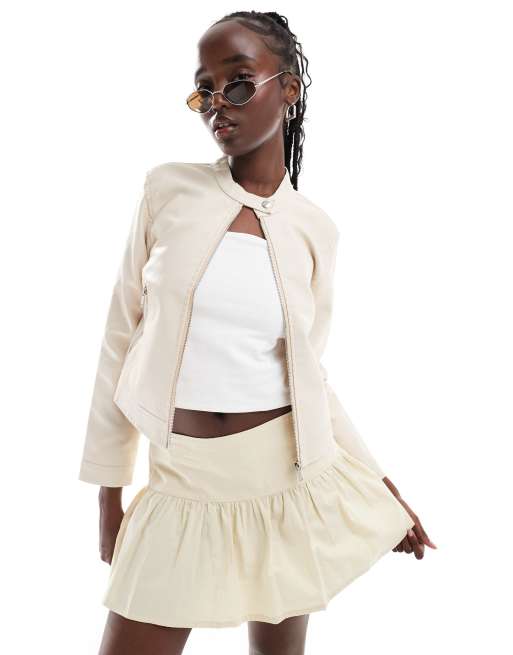 Brave Soul – Gräddvit bikerjacka i läderimitation