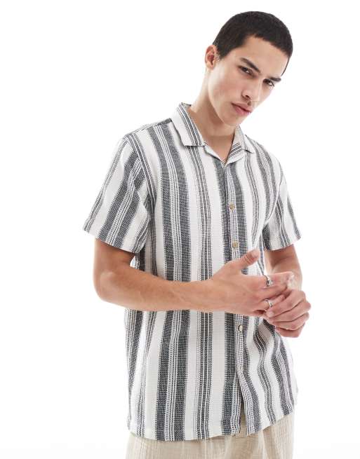 Brave Soul – Marinblå och gräddvit, randig skjorta med struktur och korta ärmar