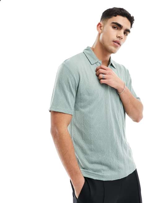 Brave Soul – Mintgrön, texturstickad pikétröja