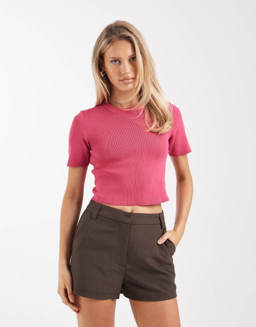 Brave Soul – Rosa, tätstickad tröja med korta ärmar