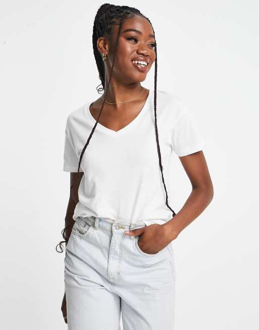 Brave Soul – Suny – Vit t-shirt med v-ringning