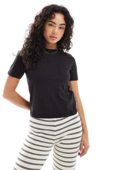 Brave Soul – Svart, bomullsrik t-shirt med korta ärmar och detaljficka