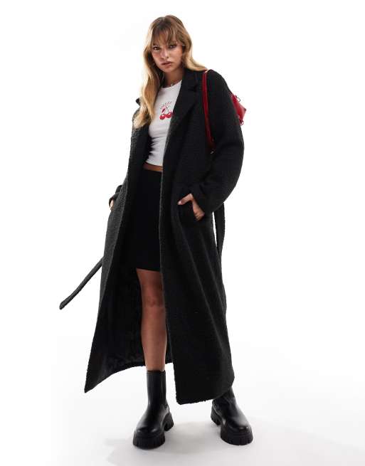 Brave Soul – Svart maxikappa i bouclé med skärp