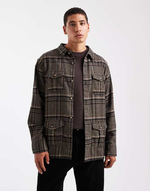 Brave Soul – Svart- och brunrutig skjortjacka med långa ärmar