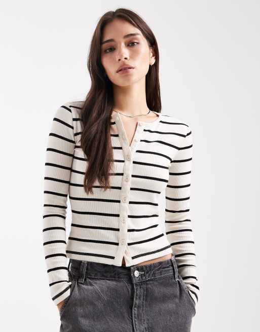 Brave Soul – Svart och krämvit topp med långa ärmar och knäppning
