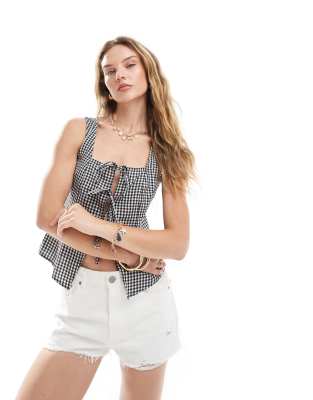 Brave Soul – Svart och vit ginghamrutig kostymväst med knytband framtill