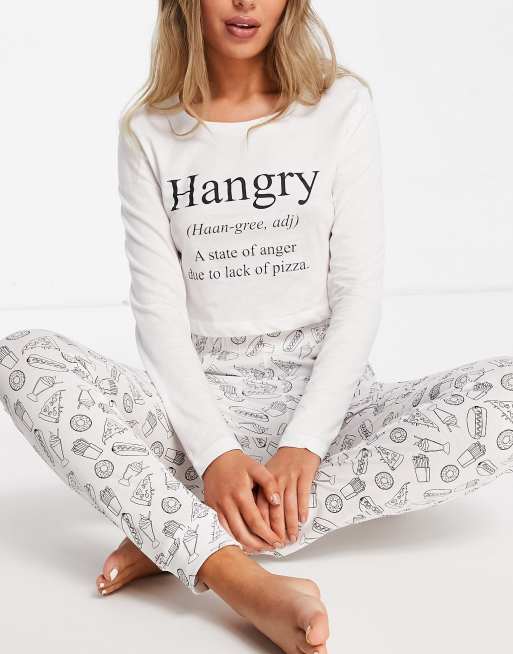 Brave Soul – Svartvit pyjamas med långärmad t-shirt med "Hangry"-tryck och långärmade byxor