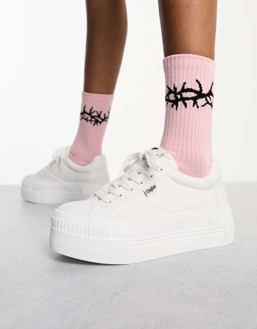 Buffalo – Vita, veganvänliga flatform-sneakers