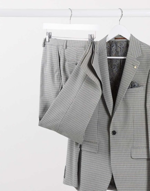 Burton Menswear – Brun hundtandsmönstrad kostym med extra smal passform