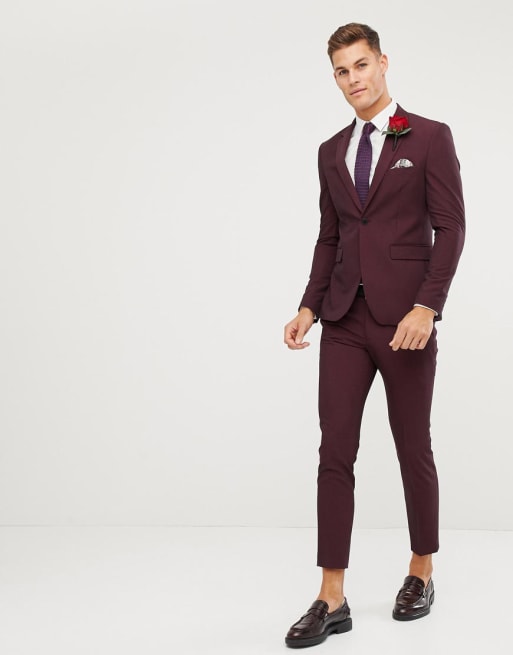 Burton Menswear – Vinröd kostym med extra smal passform