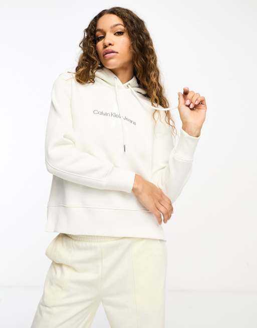 Calvin Klein Jeans – Archival – Vit huvtröja med logga