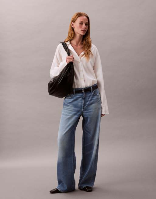 Calvin Klein Jeans – Blå, baggy jeans i mellanljus tvätt med låg midja