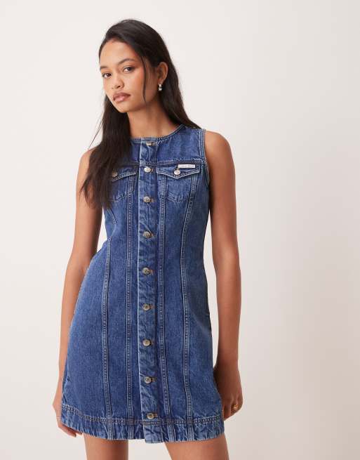 Calvin Klein Jeans – Blå miniklänning i denim med knäppning