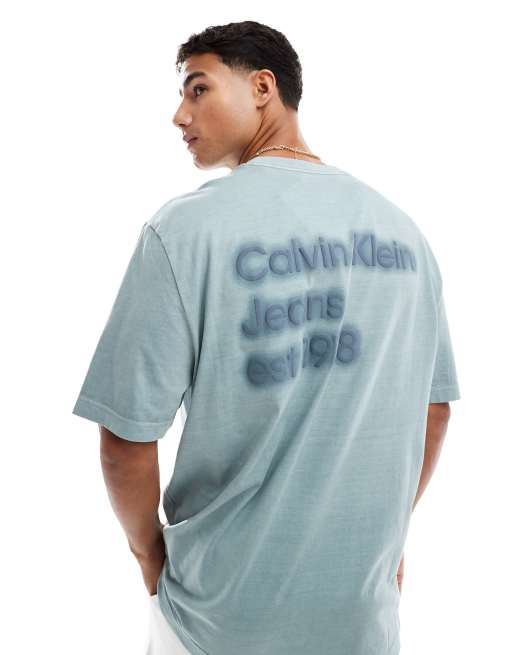 Calvin Klein Jeans – Blekgrå t-shirt med logga baktill