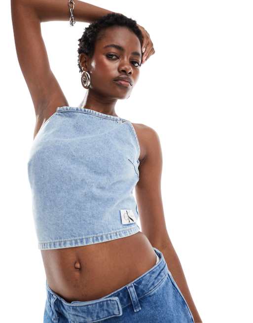 Calvin Klein Jeans – Crop top med knytband och ljus tvätt