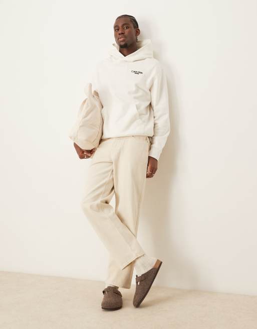 Calvin Klein Jeans – Gräddvit huvtröja med logga på ryggen - Endast hos ASOS
