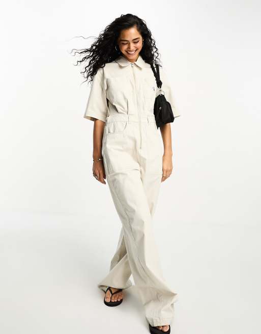 Calvin Klein Jeans – Krämvit overall i cargostil med utskuren detalj baktill
