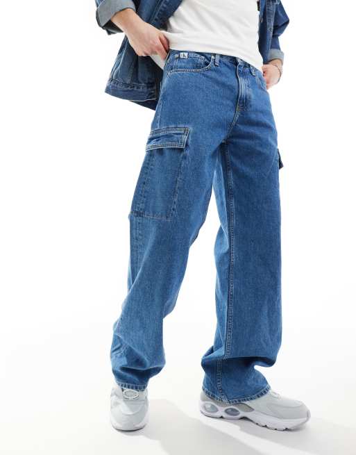 Calvin Klein Jeans – Mellanblå, tvättade jeans i 90-talsstil med ledig passform