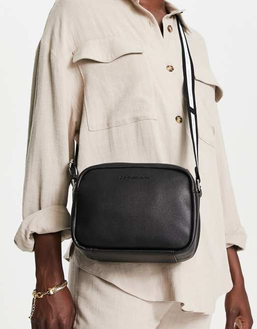 Calvin Klein Jeans – Svart kameraväska med dubbla dragkedjor och tejpade detaljer med logga