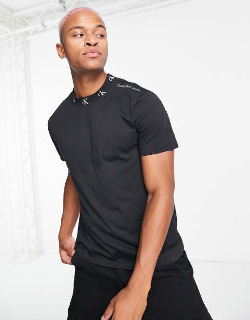 Calvin Klein Jeans – Svart t-shirt med logga i jacquard på axlarna