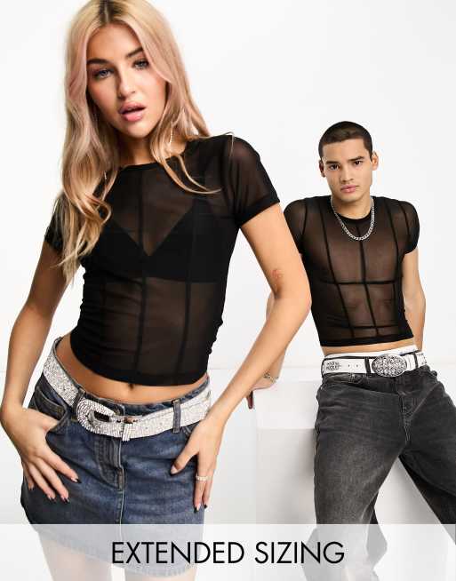 Calvin Klein Jeans – Svart topp med dekorativ söm i unisex-modell av mesh, exklusivt hos ASOS
