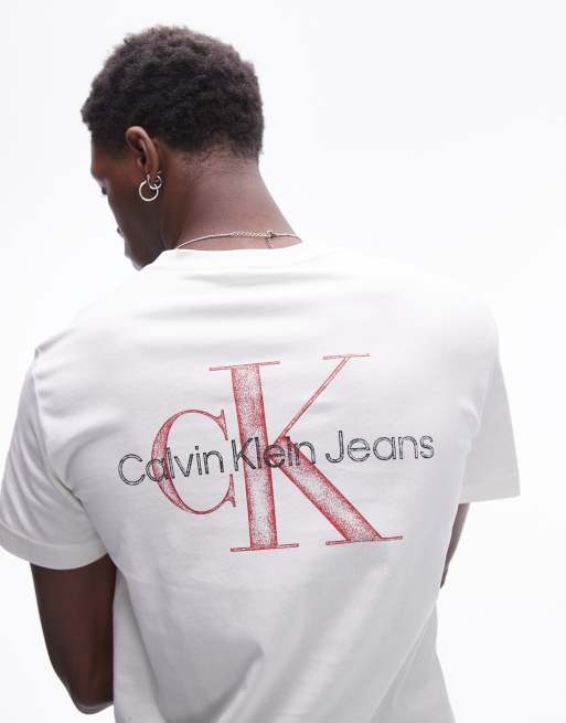 Calvin Klein Jeans – Vit t-shirt med textur och monogram
