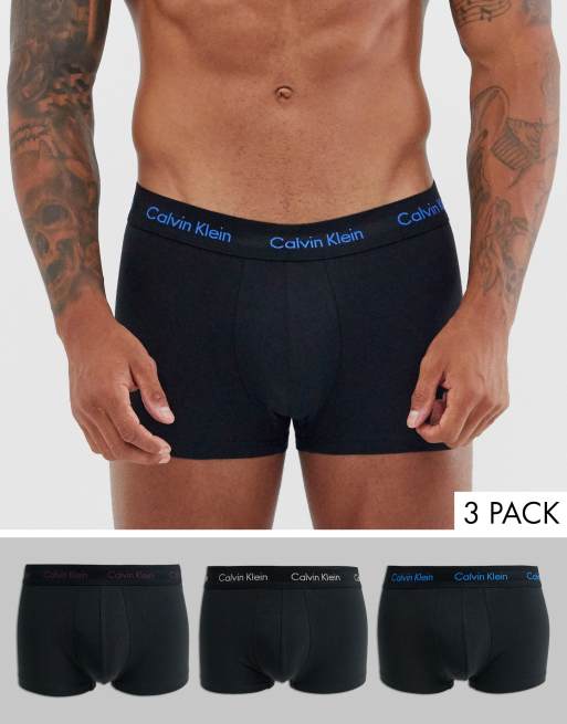 Calvin Klein – 3-pack svarta trunks i stretchig bomull med låg midja