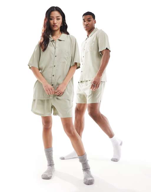 Calvin Klein – Gråbeige, vävd pyjamas med skjorta och shorts