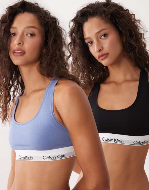 Calvin Klein – Icon – Svarta och blå bralettes i bomull och modal, 2-pack