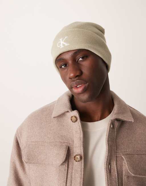 Calvin Klein Jeans – Havrefärgad mössa med broderad logga