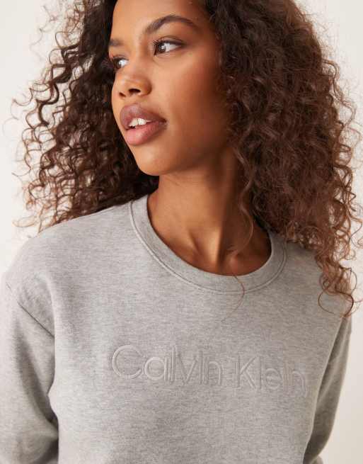 Calvin Klein – Modern Terry – Grå, avslappnad sweatshirt med rund halsringning och logga