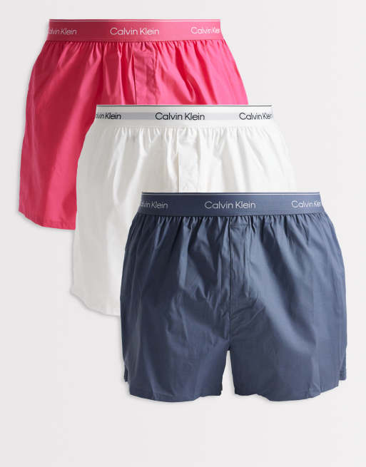 Calvin Klein – Rosa/vita/mörkgrå, vävda boxershorts, 3-pack