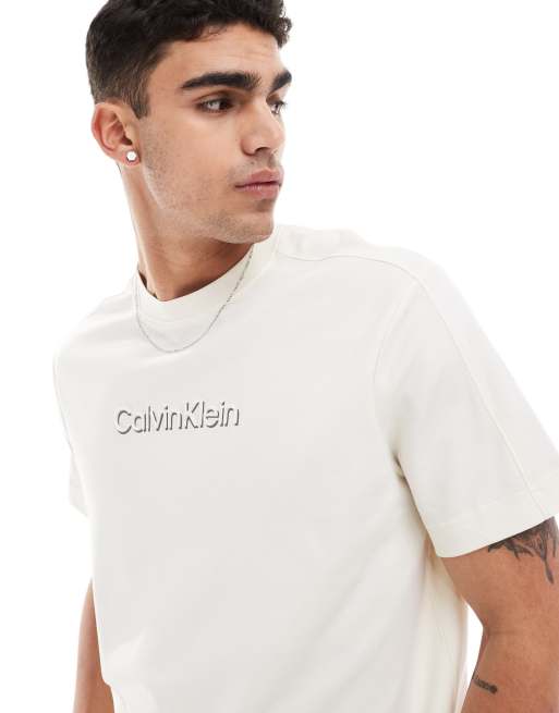 Calvin Klein – Shadow – Vit t-shirt med präglad logga