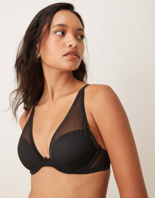 Calvin Klein – Shapewear – Svart push up-behå i mesh med djup urringning