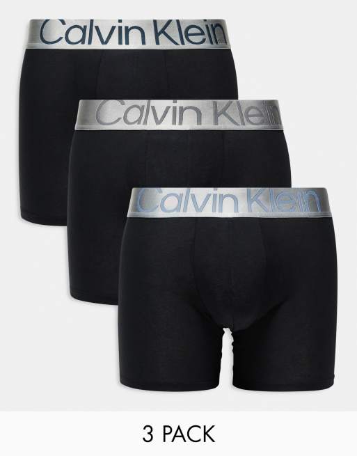 Calvin Klein – Steel – Svarta boxerkalsonger med färgad logga på midjebandet, 3-pack