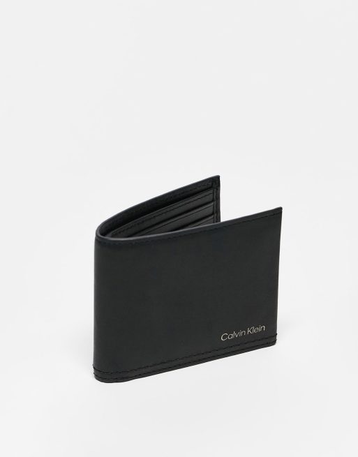 Calvin Klein – Svart dubbelstickad plånbok med myntfack