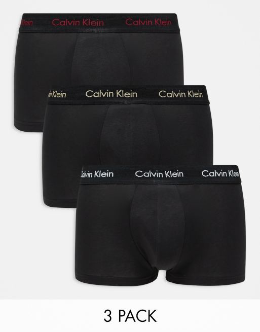 Calvin Klein – Svarta boxershorts i bomull med låg midja, stretch och färgad logga på midjebandet, 3-pack
