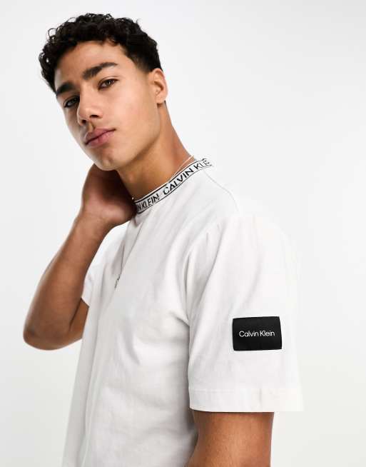 Calvin Klein – Vit t-shirt med banddetalj med logga i ringningen och märke på sidan