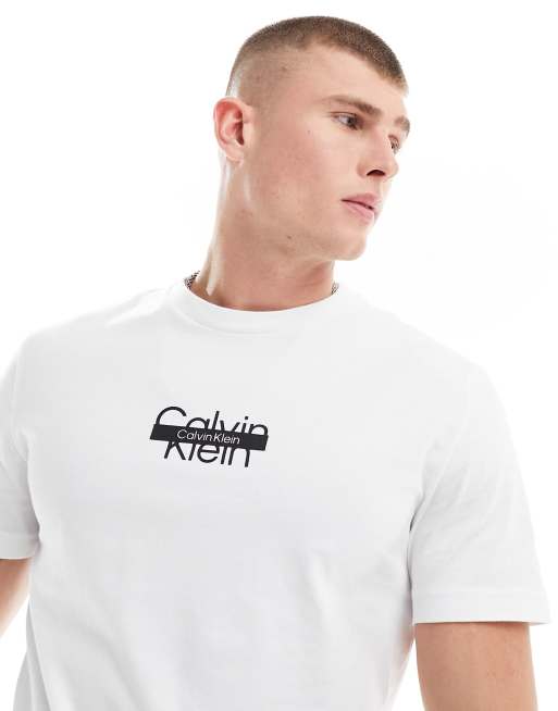 Calvin Klein – Vit t-shirt med överstruken logga