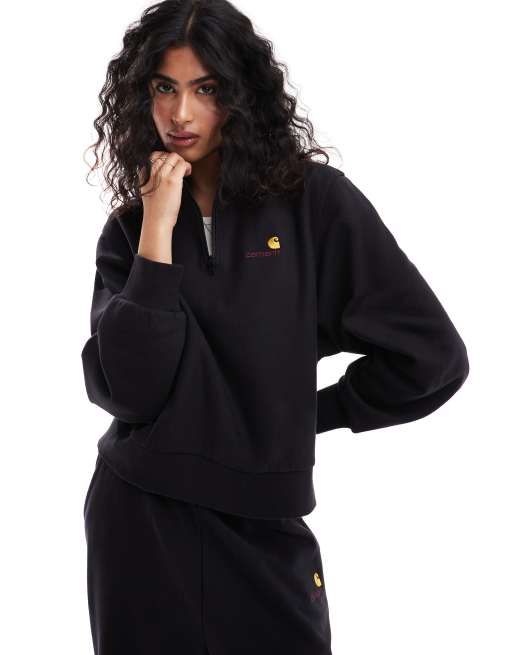 Carhartt WIP – American Script – Svarta sweatshirt med halvlång dragkedja