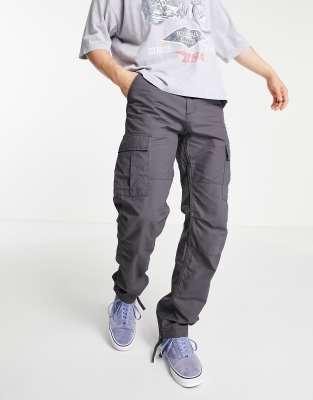 Carhartt WIP – Aviation – Grå cargobyxor med smal passform