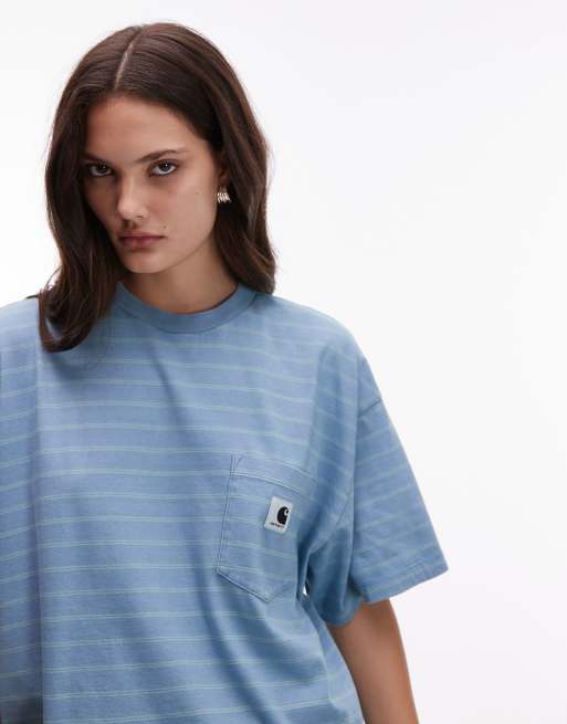 Carhartt WIP – Brodina – Blårandig t-shirt med korta ärmar och ficka