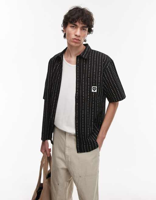 Carhartt WIP – Drewe – Svart, randig skjorta med korta ärmar och hjärtmotiv