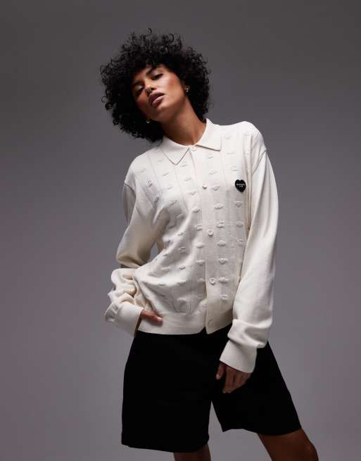 Carhartt WIP – Drewe – Vit, stickad kofta med hjärtlogga