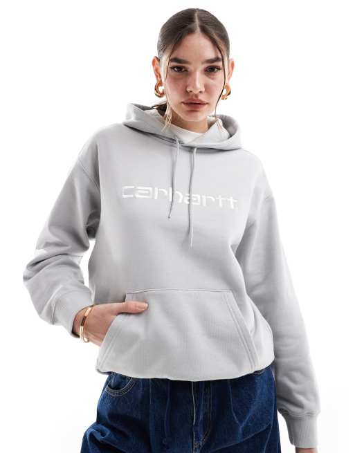 Carhartt WIP – Grå huvtröja med broderi